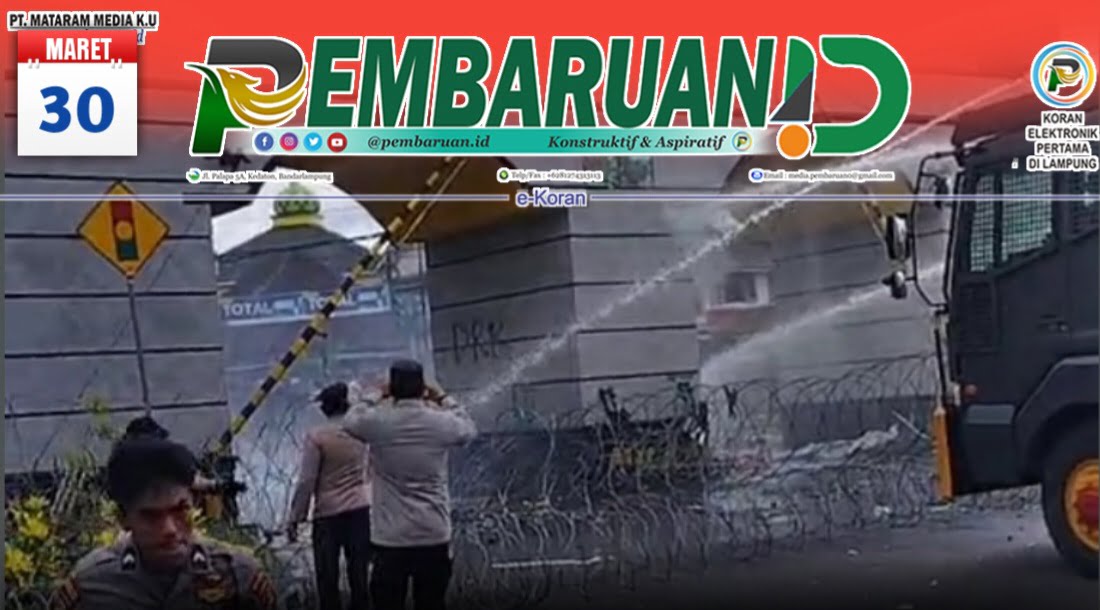 Sebelumnya, demo mahasiswa atas penolakan undang-undang cipta kerja di DPRD Lampung, berakhir ricuh setelah aparat kepolisian menembakkan water canon, Kamis (30/3/2023).